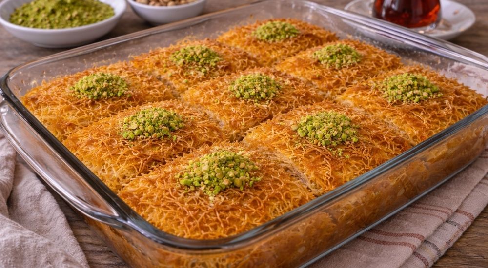 Fırında Kadayıf Tatlısı Tarifi Kaç Kişilik: 8 Kişilik Hazırlık Süresi: 20 Dakika Pişirme Süresi: 35 Dakika Toplam Süre: 55 Dakika Malzemeler Kadayıf İçin 500 g tel kadayıf 150 g tereyağı (eritilmiş) 1 su bardağı iri çekilmiş ceviz veya fındık Şerbeti İçin 2,5 su bardağı toz şeker 2,5 su bardağı su Birkaç damla limon suyu Yapılışı […]